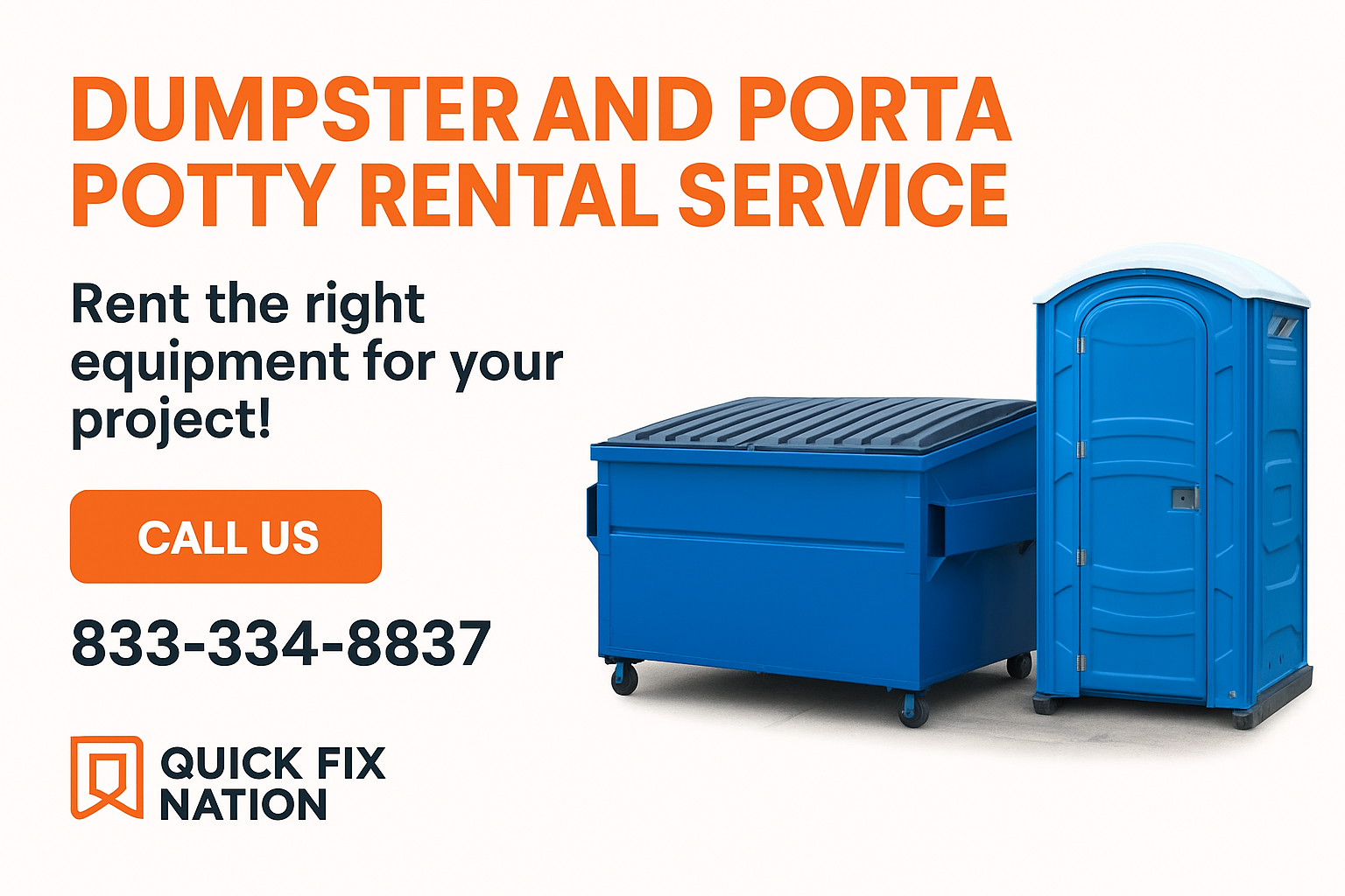 Affordable dumpster rentals for projects and clean events, plus clean, sanitized porta potties delivered on time. Perfect for construction sites, remodels, and gatherings. 📞 Call: 833-334-8837